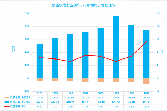 1.2 儀器儀表行業(yè)2019年1-9月利潤(rùn)總額波動(dòng)分析