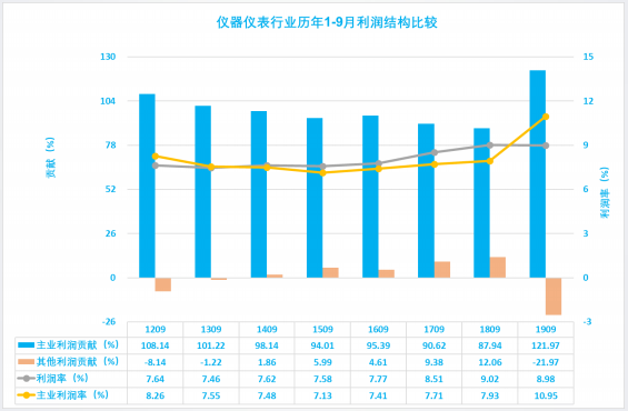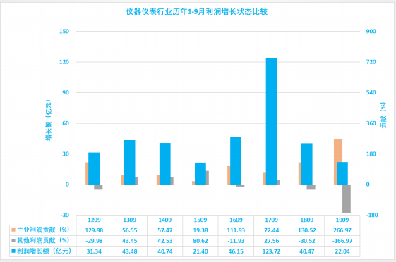 1.3.1 儀器儀表行業(yè)2019年1-9月主業(yè)利潤(rùn)波動(dòng)分析