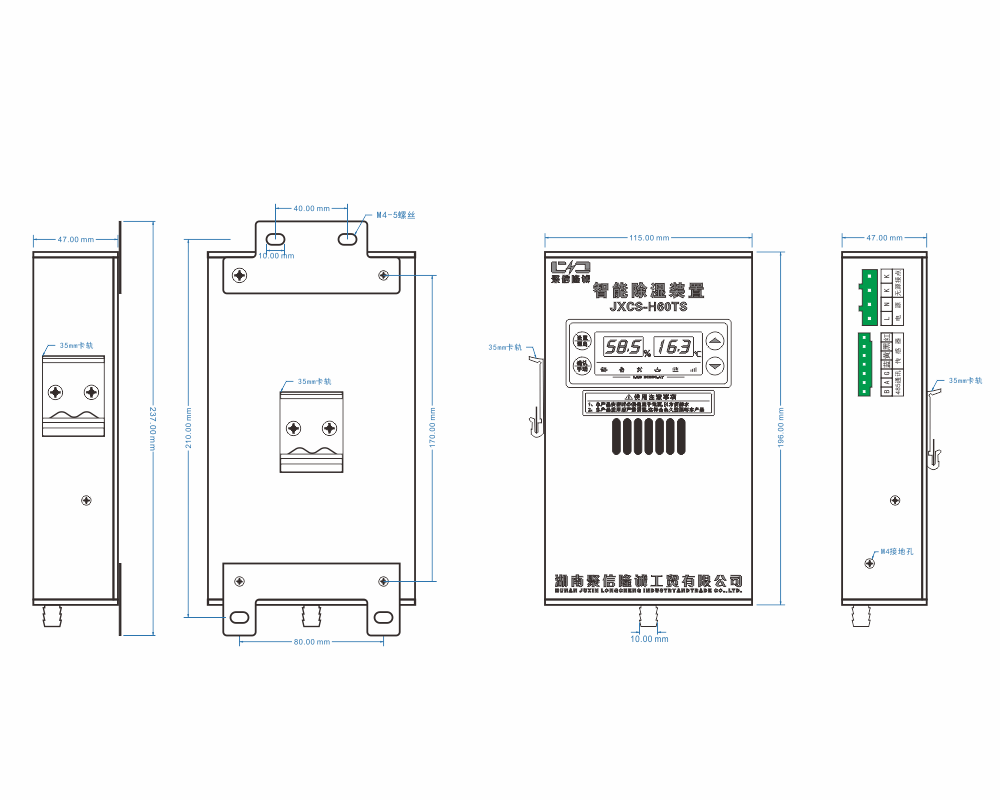 1、使用M5螺釘或者5mm的鉚釘固定。安裝時除濕裝置必須豎放,出水口朝下。